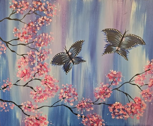 FUN Paint-Party for All Ages - No experience required - All supplies and instruction included - Painting "Butterfly Dance" - Use Website Link for More Info & to Register.