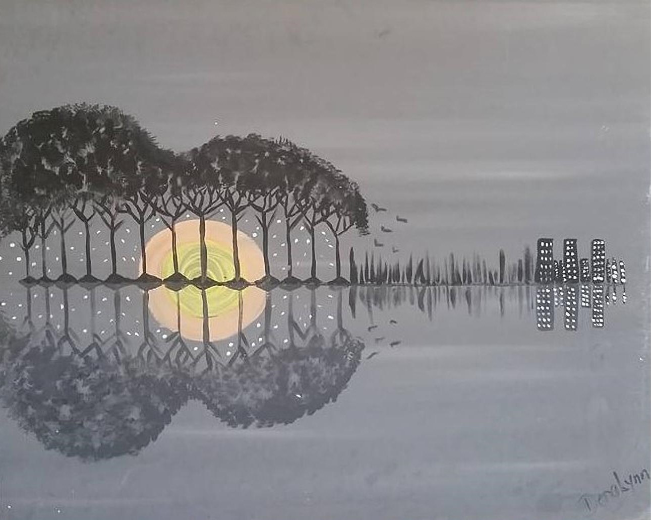 FUN Paint-Party for All Ages - No experience required - All supplies included - Painting "Musical Reflection" (is it a guitar? is it a landscape? Yes!) - Use Website Link for More Info & to Register.