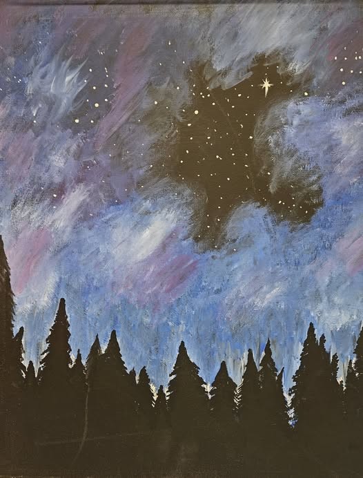 New Day & Time! FUN Paint-Party for All Ages - No experience required - All supplies included - Painting "Solstice Night" - Use Website Link for More Info & to Register.