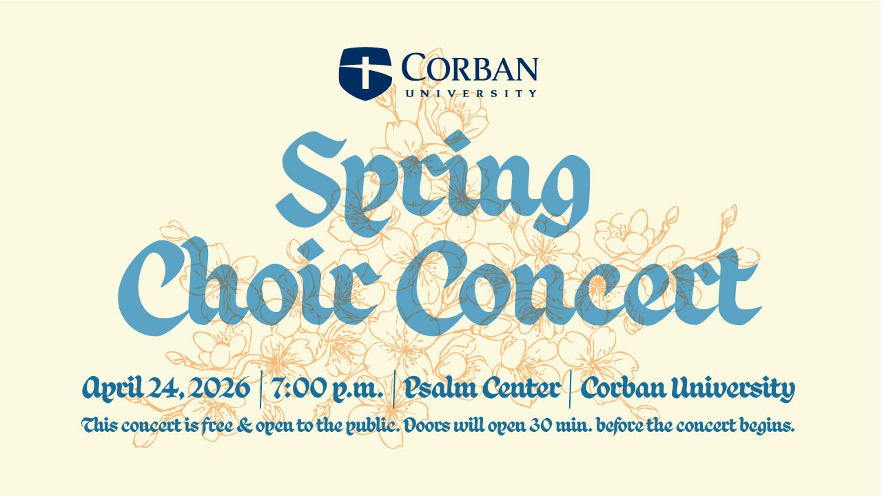 Corban University's choirs will perform selections from their spring repertoire. This concert is free and open to the public. Doors open 30 minutes before the concert begins.