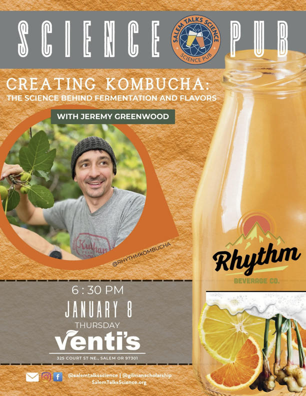 Join Jeremy Greenwood to learn about the secrets of creating kombucha. This drink continues to increase in popularity and has a wide variety of flavors available. The talk will highlight how Jeremy selects the right ingredients for his products and the process he uses to make his drinks right here in Salem.