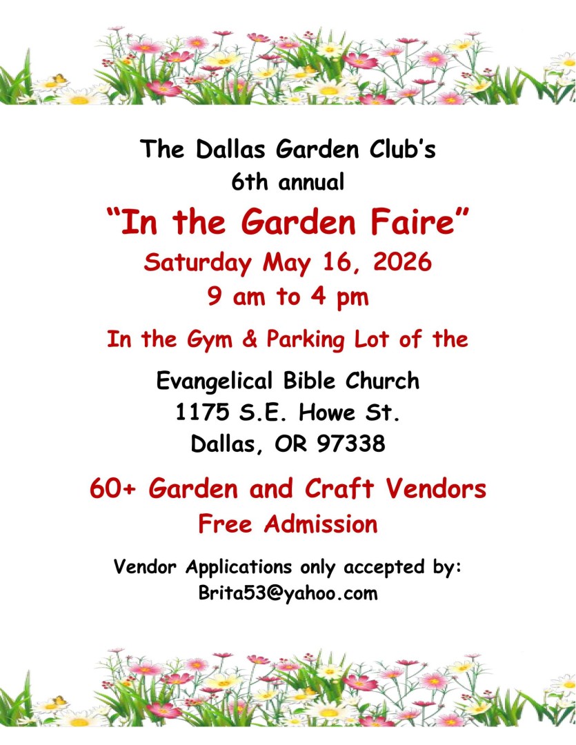 Dallas Garden Club's 6th annual In the Garden Faire. 60+ Garden & Craft Vendors. Free admission. The proceeds from this event go back into our community for "Making a Difference Where we Live".