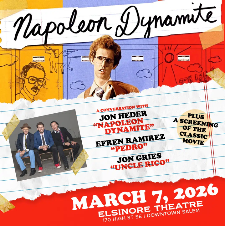 This unique evening includes a full screening of “Napoleon Dynamite” followed by a lively, freewheeling, interactive experience, with fan-favorite cast members: Jon Heder (Napoleon Dynamite), Jon Gries (Uncle Rico) and Efren Ramirez (Pedro).