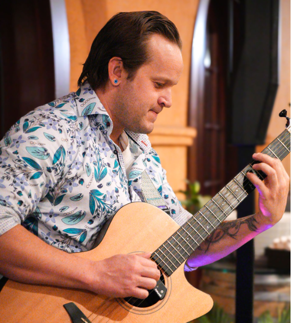 Known for his captivating finger-style guitar, Forest blends tapping and percussive techniques to create a sound that feels bigger than one instrument should allow. Drawing inspiration from legends like Michael Hedges, Andy McKee, Led Zeppelin, and CHON, each performance takes you on a rich, melodic journey. With his dynamic style, Forest turns every show into a personal, uplifting experience. So grab a glass, savor some delicious bites, and let the rhythm of the weekend carry you away.